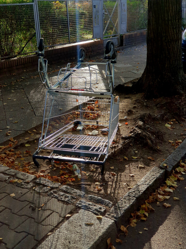 Whenever I walk through the streets of Berlin, I see abandoned shopping carts. They spark a feeling of loneliness and carelessness in me, as well as the idea that they were once useful but have lost their value now that they have completed their purpose. One afternoon, I started to wonder: is there a connection between how people deal with these shopping carts and how they treat each other in society? Do these carelessly abandoned shopping carts actually reveal something about our attitude towards each other? To me, these shopping carts are not just shopping carts. Instead, they embody individual and societal mindlessness. They represent those in our society who have been abandoned by the state and individuals. The unseen, the forgotten, the ignored, the unwanted.
